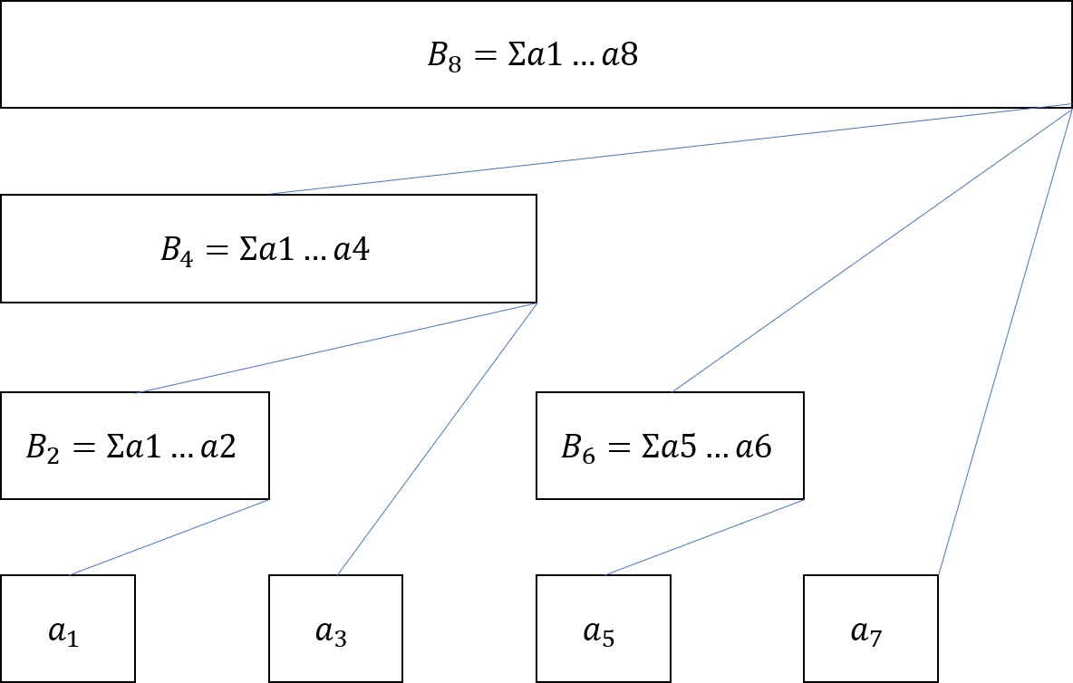 支援修改及查詢區間訊息的題目可以用線段樹實作,然而比線段樹容易實作的樹狀數組也可解決這類問題。樹狀數組只需要一個長度為 的陣列 , 的每一個位置存放的資料和編號有關:
